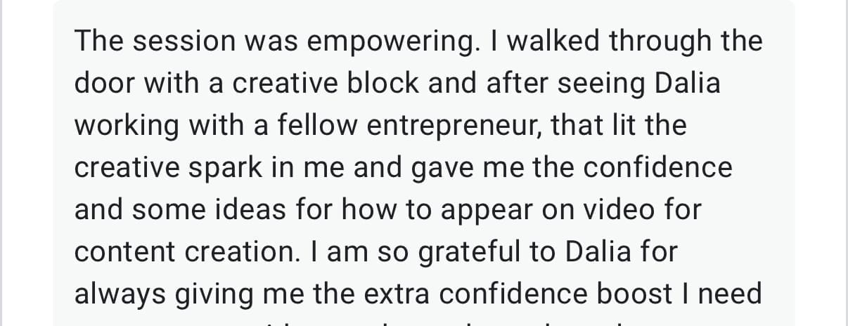 Personal Branding with Dalia – This is where I'll be filming your 5 personal branding reels! Perfect to demonstrate your process.